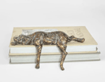 Finished in an antique brass tone with subtle variation throughout, it brings warmth and depth to shelves, consoles, or layered vignettes. Designed to sit beautifully atop books or along a ledge, it adds a sculptural element that feels both refined and quietly playful.