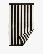 Designed with versatility in mind, the reversible finish allows you to change the mood with ease. A bold, wide stripe on one side, a finer, more delicate stripe on the other. Perfect draped over a rail in the bathroom, layered poolside in the afternoon sun, or packed for slow days by the sea.