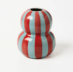 Rich, playful, and full of personality, the Festive Vase in Burgundy Pale Blue Stripe is a joyful take on classic striping. Alternating hand-painted bands of deep burgundy and soft powder blue wrap around the rounded double-bubble silhouette, creating a beautiful balance of warmth and freshness.