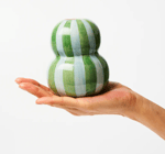 Fresh and softly joyful, the Festive Vase in Green Blue Stripe brings a playful sense of colour and form to any space. Its rounded double-bubble silhouette feels both modern and nostalgic, hand painted in alternating bands of leafy green and soft powder blue for a gentle, uplifting finish.