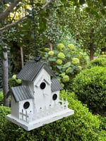 Light and quietly nostalgic, our Hanging Garden Birdhouse brings a gentle sense of charm to the garden. With its tiered roofline and soft white finish, it feels as though it has been nestled amongst the branches for years, waiting to welcome visiting birds.