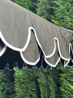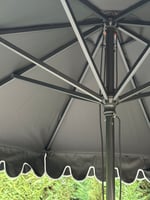 Standing 2.6 metres high, each umbrella is finished with hand sewn scalloped edges a contrasting white trim that adds a touch of Harolds charm to your outdoor spaces. They are timeless, refined, and unmistakably ‘Harold’s’