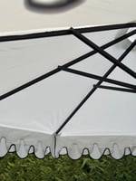 Standing 2.6 metres high, each umbrella is finished with hand sewn scalloped edges a contrasting black trim that adds a touch of Harolds charm to your outdoor spaces. They are timeless, refined, and unmistakably ‘Harold’s’