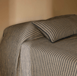 Softly structured and quietly refined, this piece brings a relaxed elegance to any setting. The indigo stripe offers a classic rhythm, softened by the natural texture of pure linen.