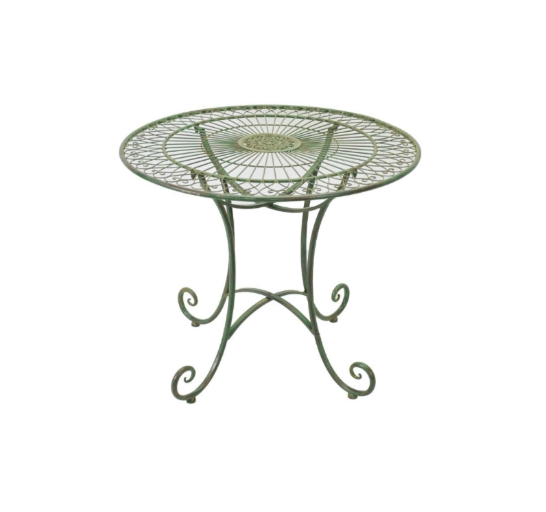 Crafted from sturdy iron and finished in a soft green, the collection blends durability with decorative detail - making it as practical as it is beautiful. Built to withstand the outdoors, the 70cm table folds with ease for flexible use and storage, while the intricate scrollwork adds a touch of romance to any setting.