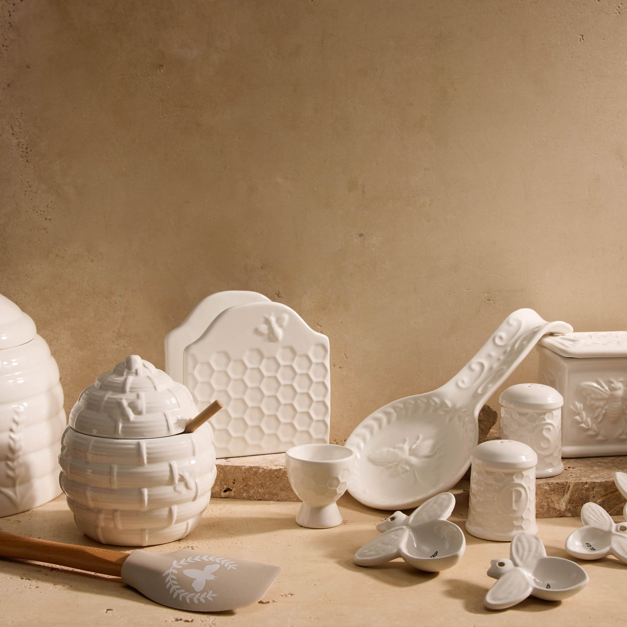 A sweet and timeless piece for the kitchen, this bee-embossed salt cellar brings a gentle sense of charm to everyday rituals. Finished in soft white with delicate detailing, it feels both nostalgic and beautifully refined on open shelves or beside the stovetop.